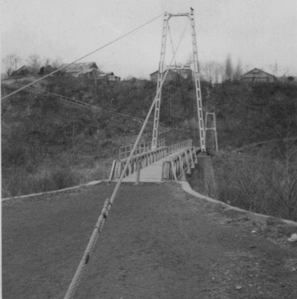 左の写真をみると中学一年生の通学の風景がまざまざと浮かんできます。飲み屋さんのいっぱい入ったサトミ会館の横をまっすぐ行くと,急ながけに出ます。そこから暁橋に降りていく急ながけ。暁橋の下をみると,板の節目や隙間からは泥色をしたシューパロ川の流れが見えます。そこをわたりきると常磐町でした。中学一年の登校途中,やんちゃな上級生がこの橋をよく揺らしました。吊り橋でしたからよく揺れます。私はこの橋の手すりにつかまって青い顔をして,ようやく渡り終えた苦い思い出が真っ先に浮かんできます。本当に橋が落ちるのではという気がして,私はこの橋はあまり好きではありませんでした。やはり危険な橋だったのか,そのうち通学路としては通行禁止になったように思います。しかし,鹿島東小の前を通り,常盤橋を通るよりもかなり近くなるので,その後も時々使っていたものです。
