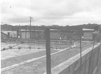 夏,泳げない私は,よくこのプールを有刺鉄線越しにのぞいていました。中で泳ぐ人たちの気持ちよさそうなこと。ときおりかかる水しぶきがかえって気持ちよかったこと。体を伸ばして背伸びをしても,中々中をうかがうことができないほど,プールの塀が高く感じていたこと。懐かしい思い出です。このプールは手前の線路側が大人用のプール,向こうの道路側に半分くらいの深さの子ども用プールがあり,小さい頃や,学校の授業などで何回かこのプールに入った記憶があります。もちろんシャワーや更衣室もきちんとついていたはずです。
